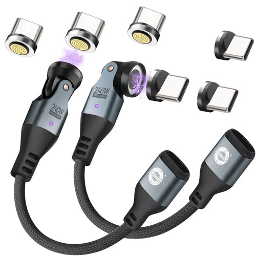 9 Pin USB C to USB A Magnetic Adapter USB 2.0 - 4 Inch Calbe 90/180/360 Degree Rotating - 480 Mbps Data transfer -