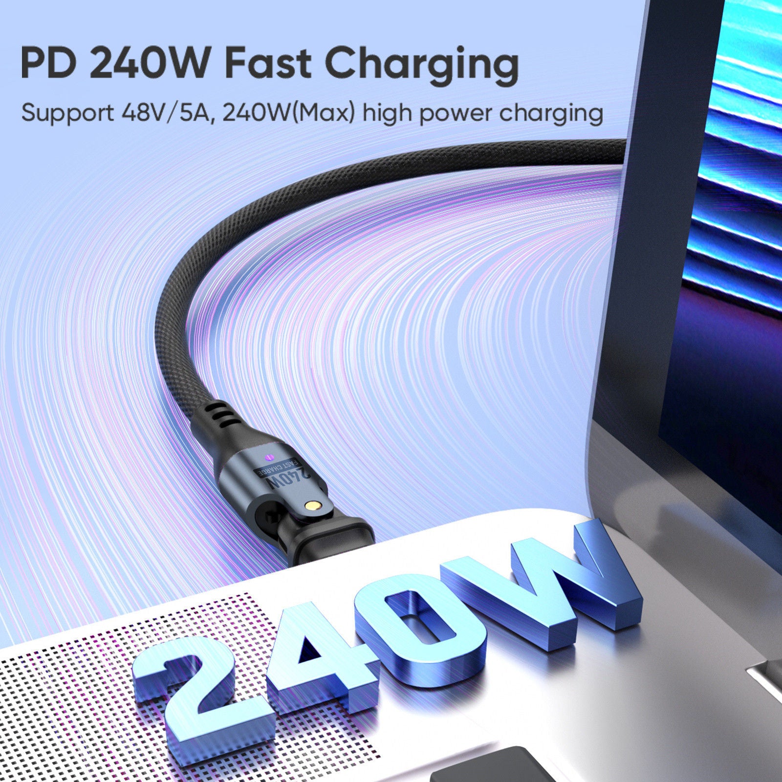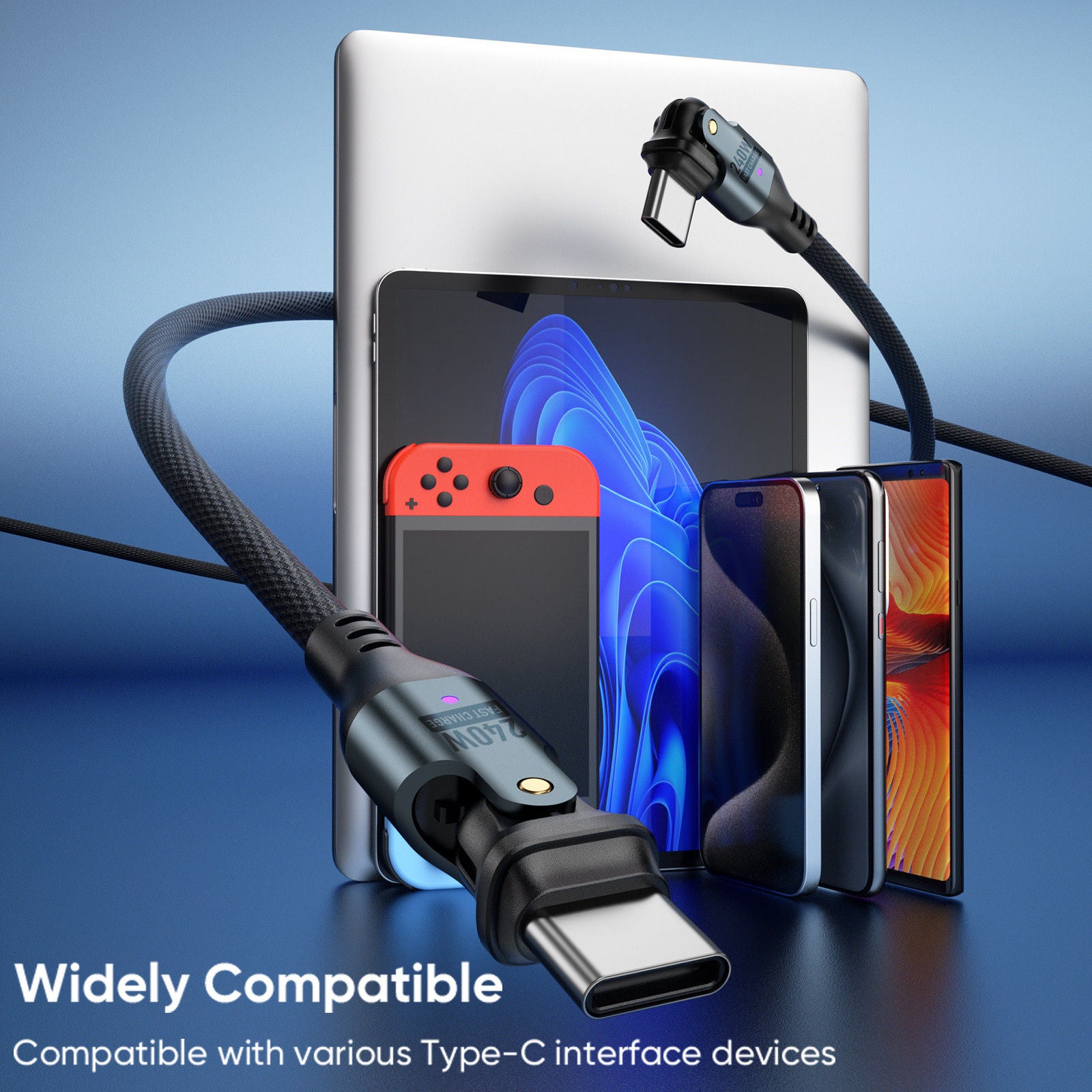 - ⚡【180 DEGREE ROTATION DESIGN】Say goodbye tradition, a new practical design: 180° rotating head, When charging with the thunderbolt 3 cable, it also allows us to find a comfortable handheld device method for gaming/phone/chat/entertainment, etc. Android usbc to usbc cable completely solves the trouble of ordinary wires that tend to block the hands and unintentionally interrupt and when used during charging. Solves the problem of frequent bending leading to fast charging cord type c for breakage.