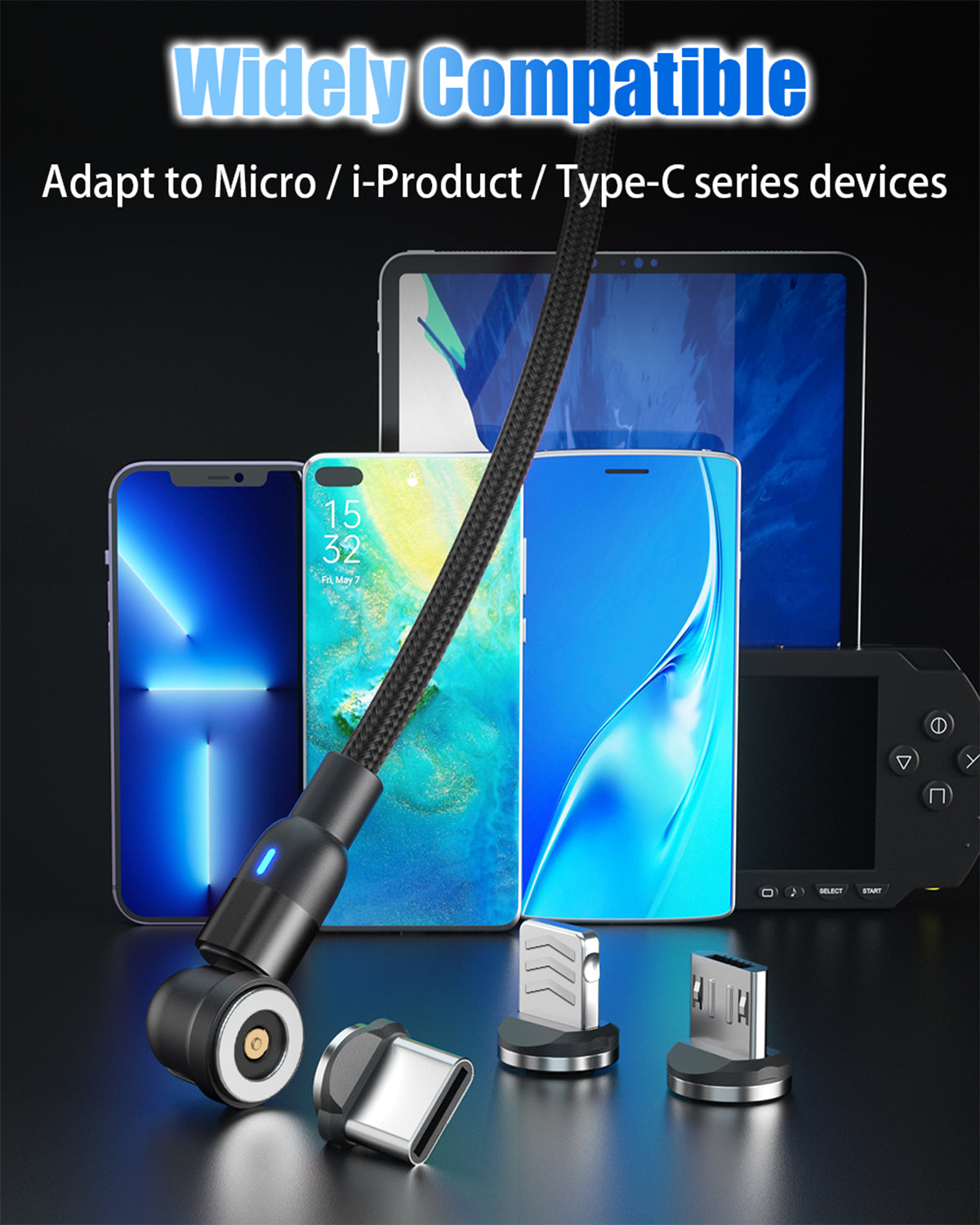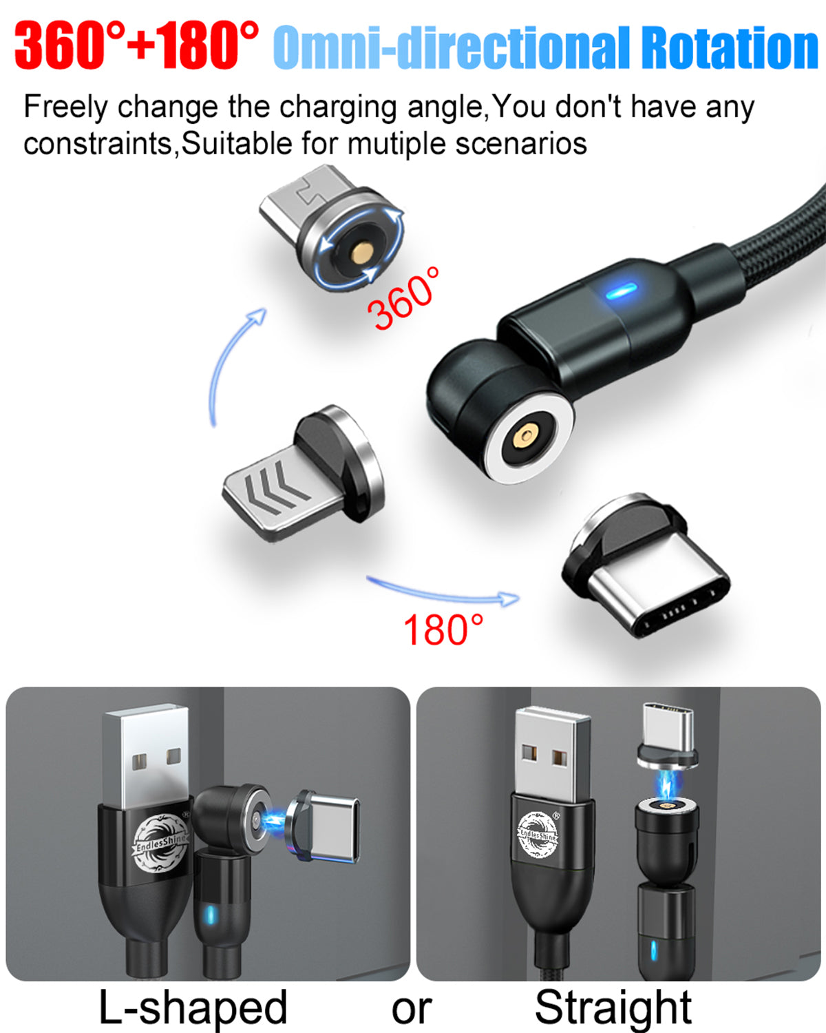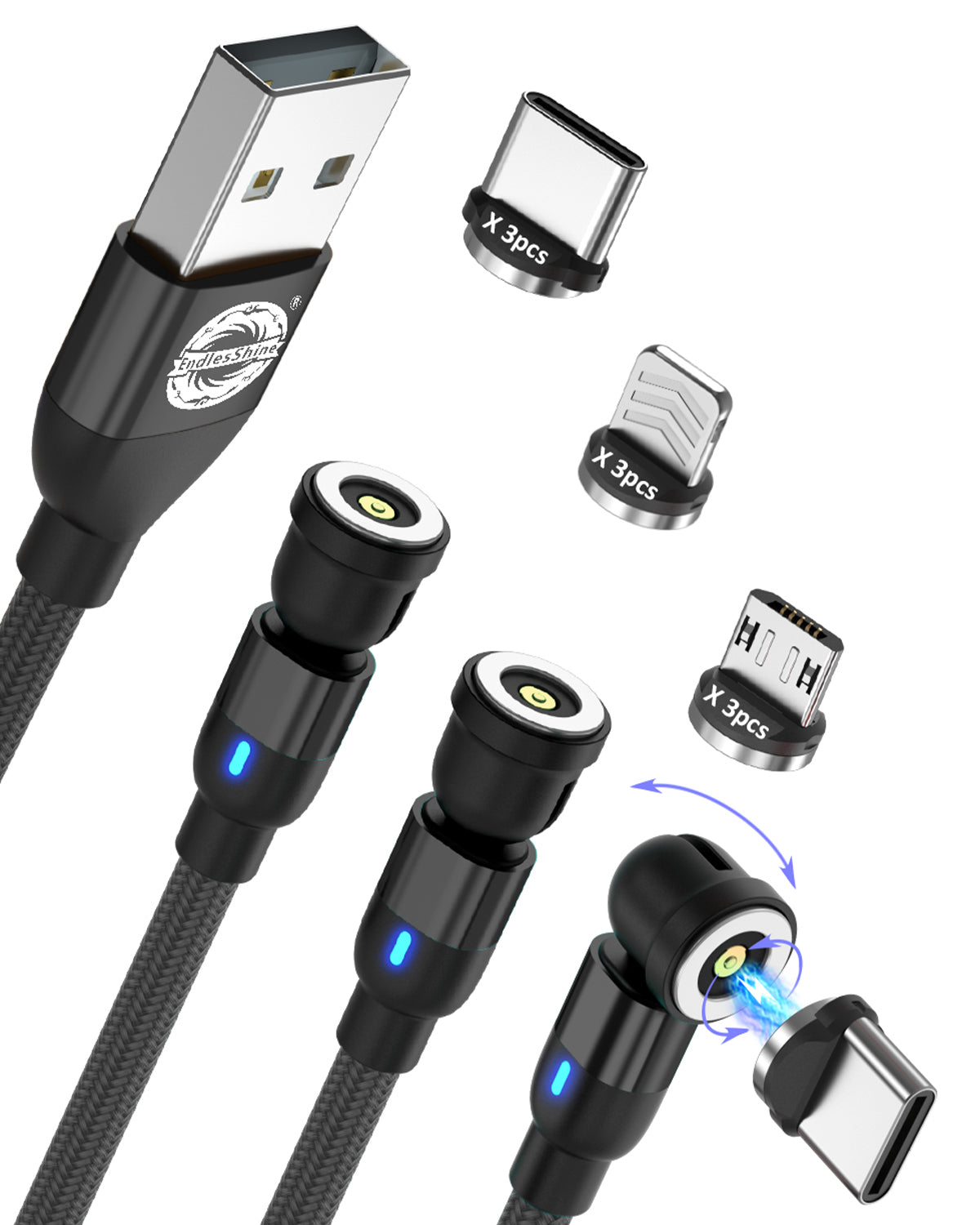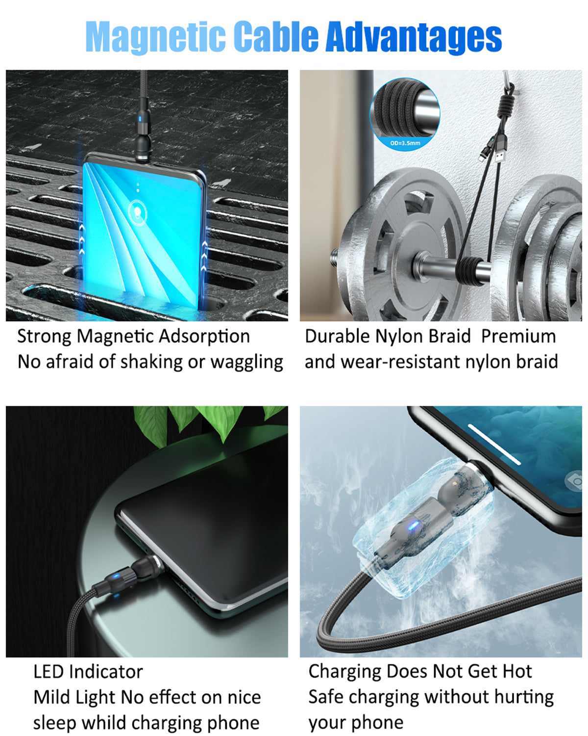 Magnetic Charging Cable 3pack - 540° Rotation Magnetic Phone Charger-USB C Cable,Micro USB,iPhone Device 3 in 1