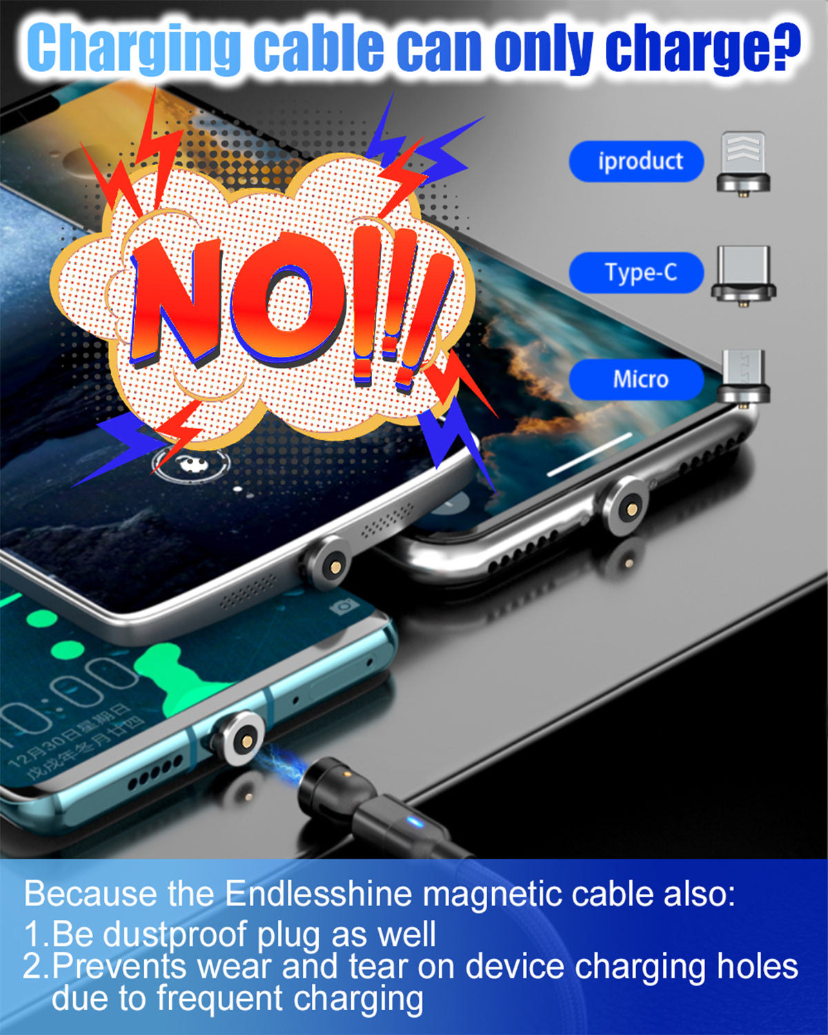 - ⚡【 2x Stronger Magnetic Connection】the Endlesshine usb c magnetic charging cable is equipped with an upgraded magnetic head that provides twice the magnetic strength to stay connected.It will never accidentally disconnect from your device while you're working or playing. Leaves you without a charge in the morning.
