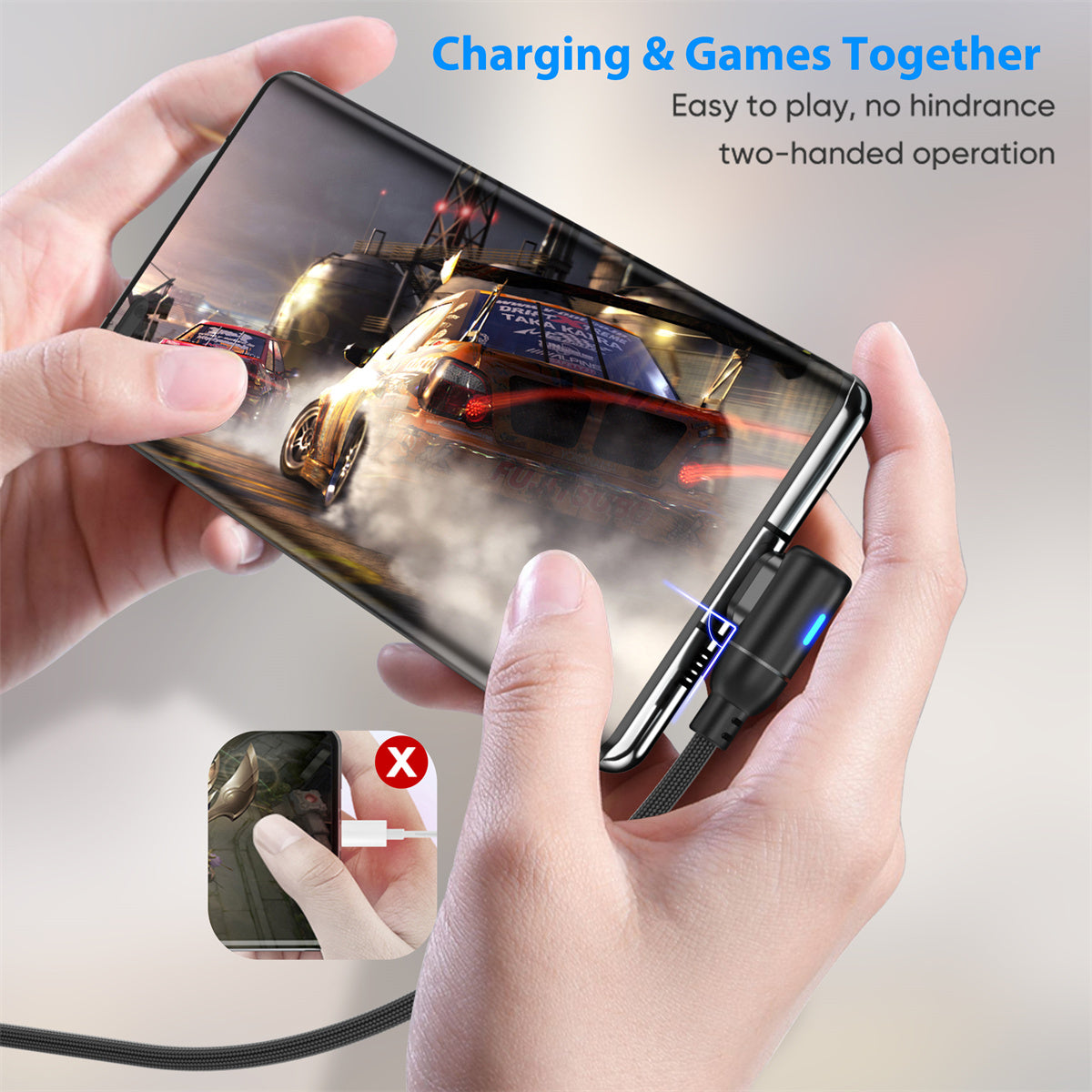 - ⚡【E-MARK CHIP DESIGN】magnetic phone charger is build in the best power delivery E-Mark chip, supports USB PD100w fast charging.With greater charging stability and higher efficiency. And data transfer speeds up to 480Mbps (1200 songs synced per minute). Please note: This android charger cable data transfer needs to pass through the USB 2.0 USB C port.