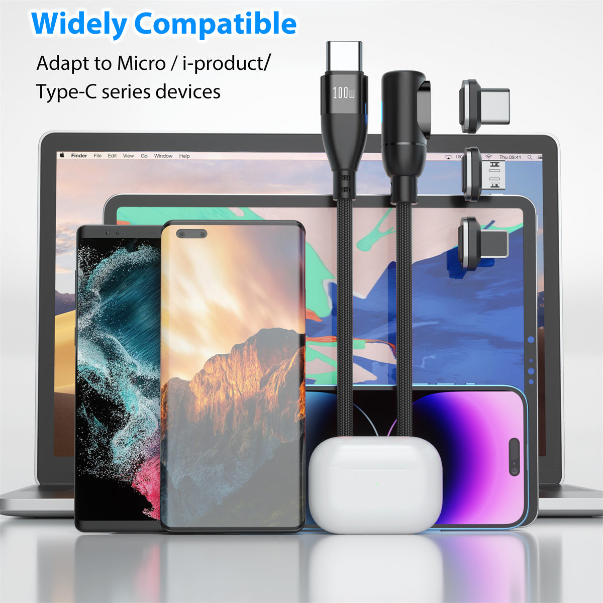 - ⚡【100W USB C Fast Charging】magnetic phone charger supports PD 3.0/4.0 and QC 3.0/4.0/5.0 fast charging up to 100W and is compatible with USB-C/iProduct/Micro Power Delivery adapters of different power sizes, such as 18W/30W/45W/60W/65W/96W/100W.Pair up EndlesShine usb type c cable with a 100W charger to power up MacBook Pro 16” up to 50% in 30min; Charger to power up Galaxy S22 Ultra up to 100% in 1 hour, usb c cord is the same as the manufacturer's matching charging cable speed.